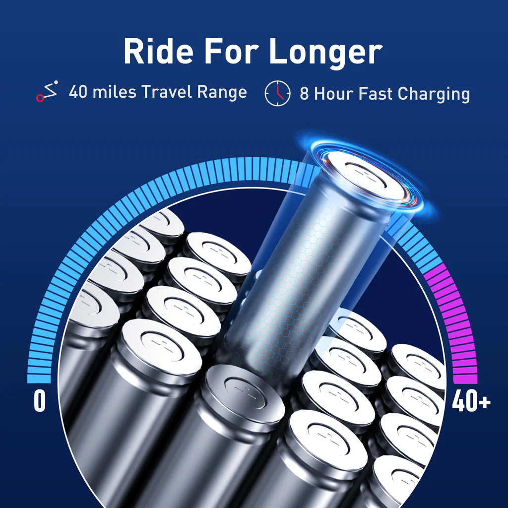 25% wider handlebars (47.3'' H × 21.3'' W) 13% wider deck (6.7'' W × 23.6'' L) 30% wider wheels (2.5") than other adult scooters